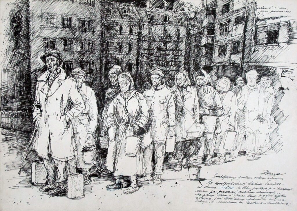 Коли я спілкуюся з боснійцями про війну в Україні, вони з розумінням кивають головами, і розмова щоразу йде по колу: «В нас було те саме: не було води, не було світла — хіба може на пару годин», а потім: «Треба почекати, поки щось підпишуть…» Деякі картини, що зображують воєнну буденність в Боснії та Герцеговині, нагадують мені початок повномасштабної війни, коли я жила в Києві на Лісовому: з їжі в Сільпо було тільки згущене молоко, а черга до аптеки могла стояти по три-чотири години.
